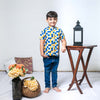 White & Blue Cotton Animal Block Print Full Sleeves Shirt For Boys