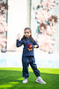 Boy & Girl Blue Printed Denim Cotton Lycra Reindeer Embroidered Twinning Set Duo