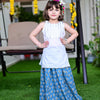 Three Piece Orange Cotton Top & Flared Pant with Grey Shibori Scarf Set For Girls