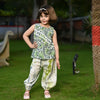 Two Piece Powder Blue Cotton Block PrintTraditional Long Dress With Mid Length Jacket Set For Girls